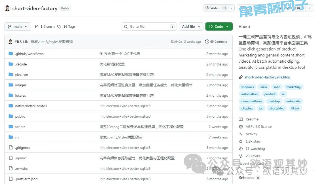 传送门:https://github.com/YILS-LIN/short-video-factory
