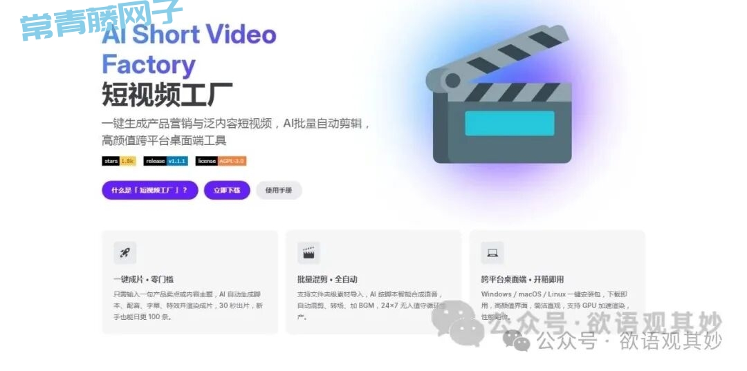 对自动化短视频生成有定制化需求的可以好好看看,项目本身是开源的,项目主页可以看到完整的操作手册,有详细的配置教程。