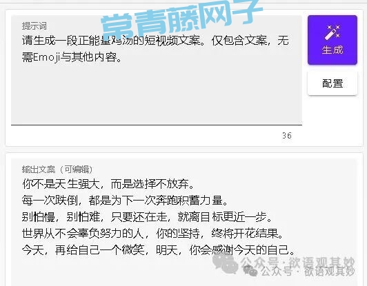 模型配置好以后,输入提示词就可以开始生成文案内容了,如果不满意也可以多次生成或者调整文案。