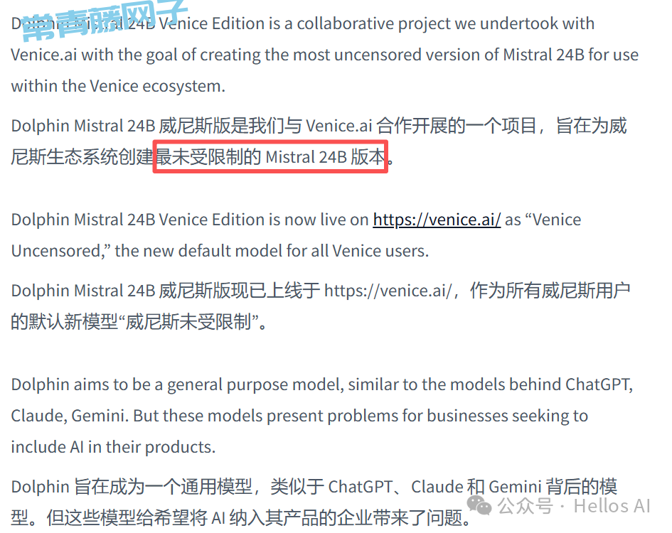 什么是Dolphin Mistral 24B 威尼斯版呢?我们来看看它自己的介绍:
