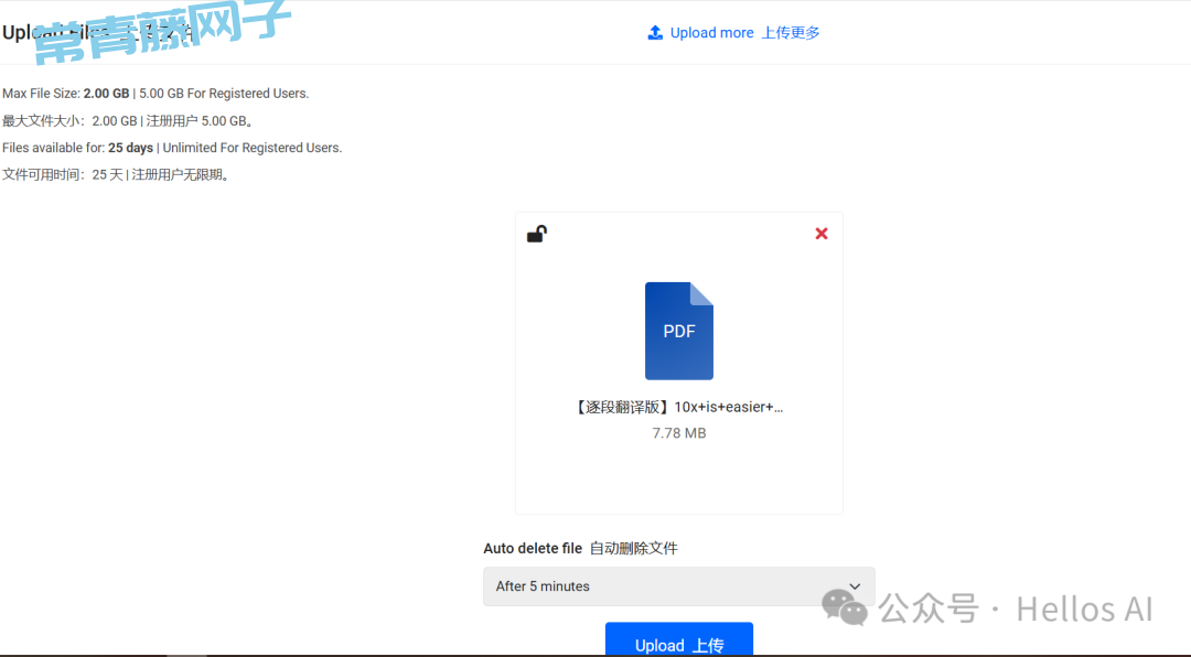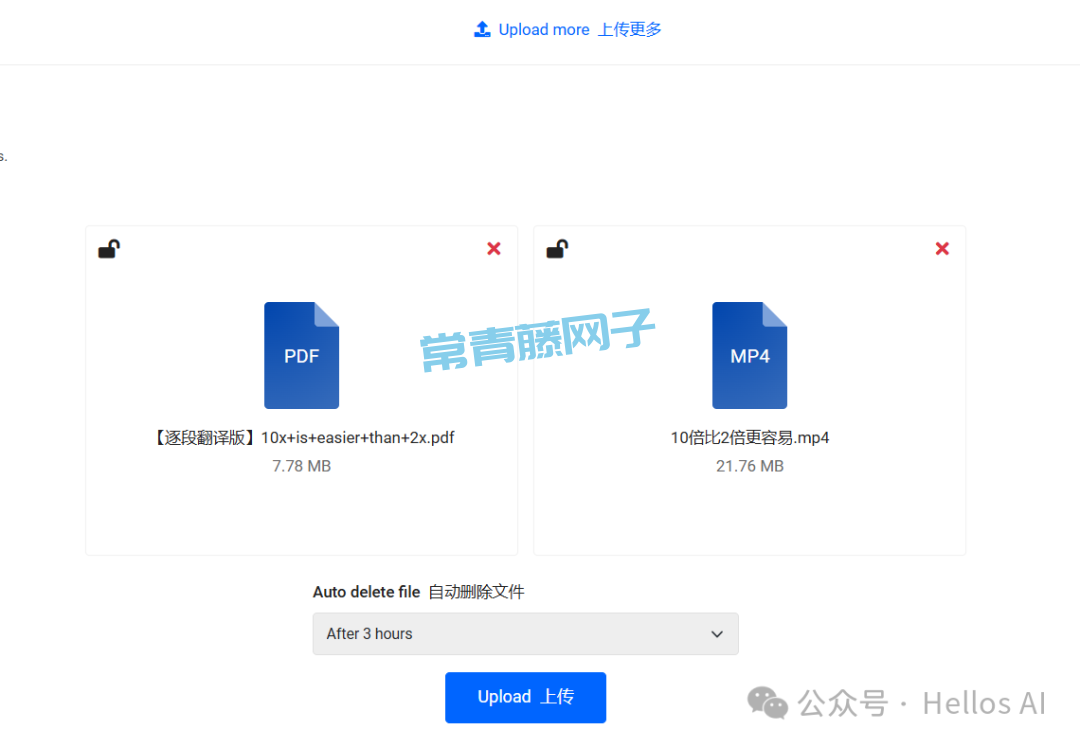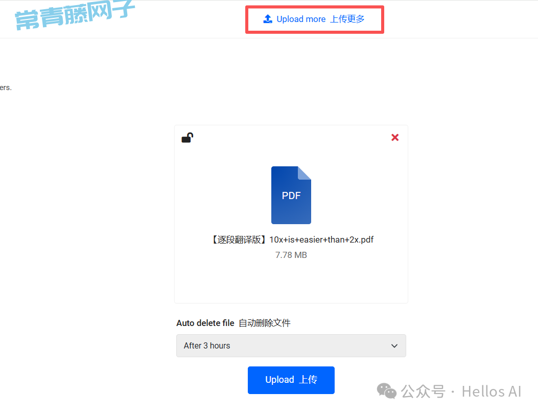 如果需要上传多个文件,在选择了第一上传的文件之后,页面上方会有一个“Upload more”的链接