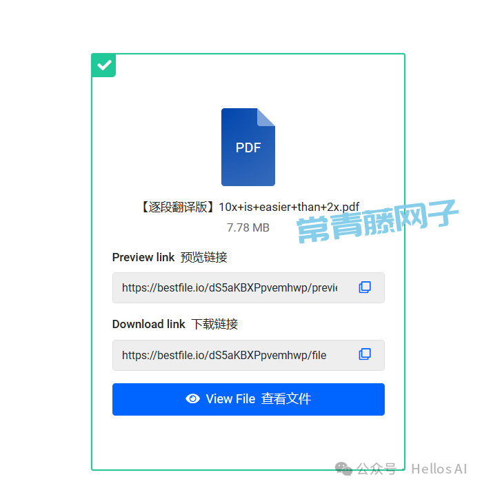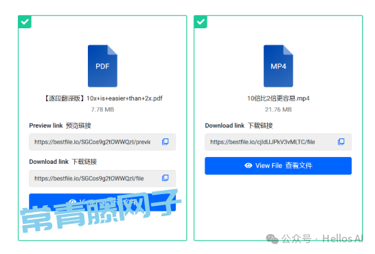 上传成功之后,会生成两个链接地址,一个是预览地址,一个是下载地址。