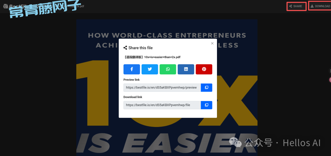 点击预览页面右上角的“share”按钮可以将文件分享到Facebook、Twitter(当然这需要魔法)