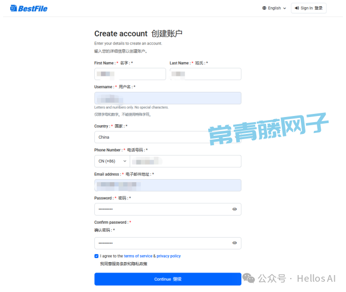 打开网址https://bestfile.io/en ,点击页面右上角的“sign up”进行注册。