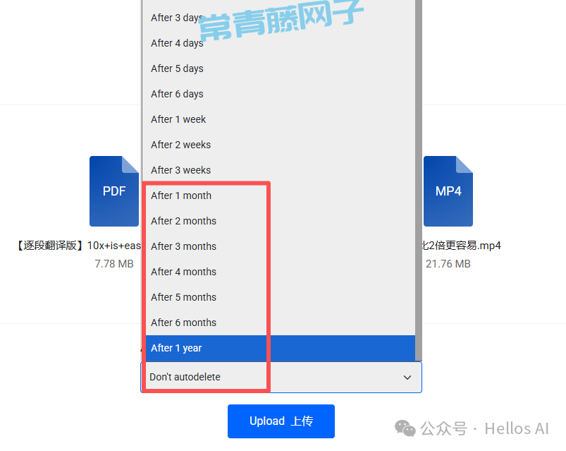 点击“Auto delete file ”下拉列表,设置自动删除文件时长。