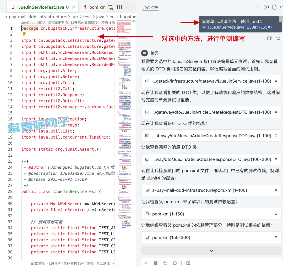 所有我们编程过程中,可以做的操作,都可以让 AI 来做,但尽量描述准确。这也就是老码农,为啥能更准确的使用 AI IDEA 工具,因为可以知道描述的内容最终可以产出的结果。