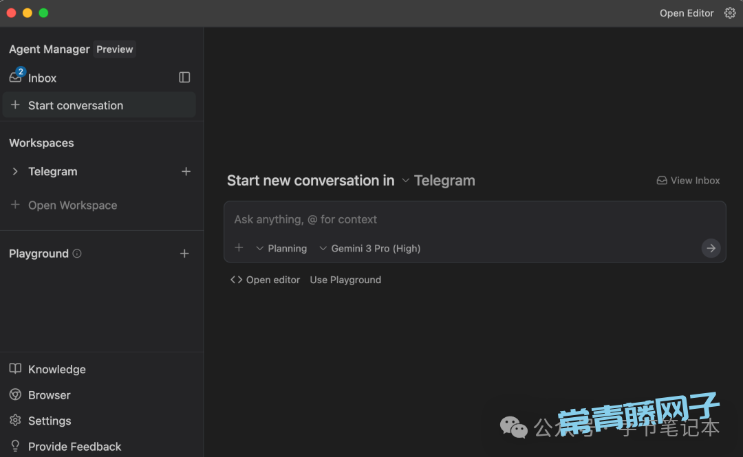 打开 Antigravity,首先看到的不是熟悉的文件列表,而是一个Agent Manager管理台。