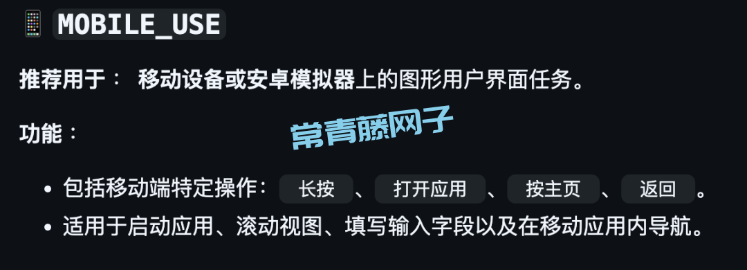 最后模型输出具体的动作指令,转化为底层的 Android ADB 命令发送给手机执行。