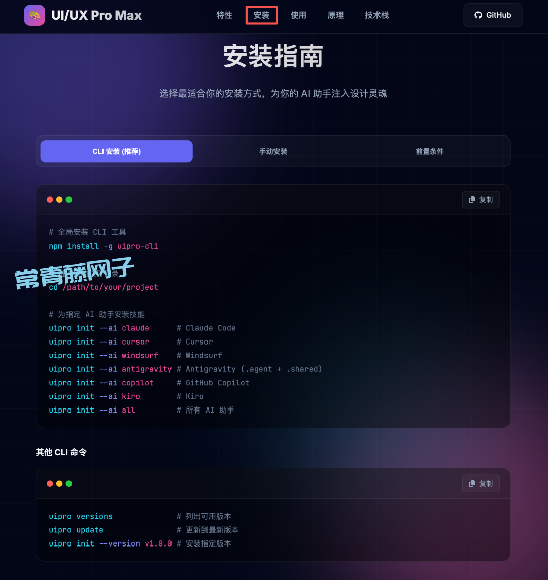 UI UX Pro Max官网:https://ui-ux-pro-max-skill.nextlevelbuilder.io/