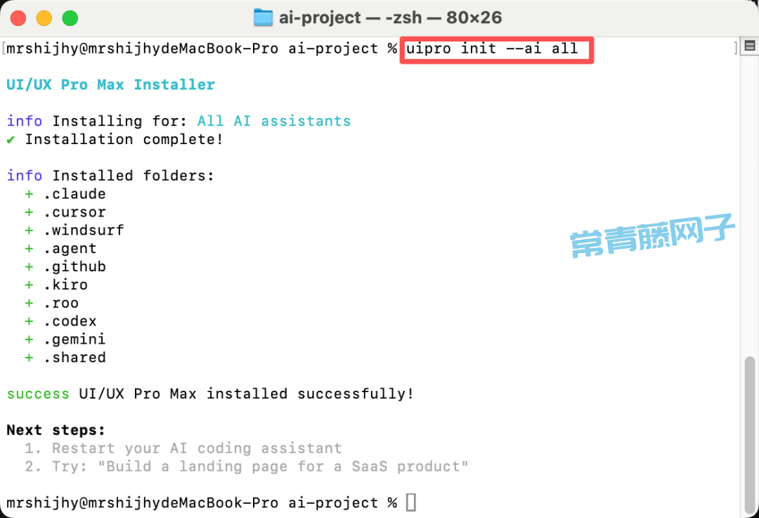 - 如果你用的是Claude,输入:uipro init --ai claude