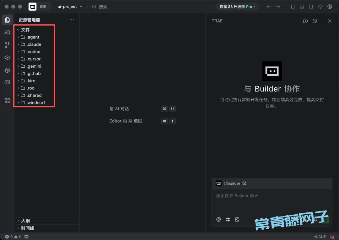 打开文件夹后,Trae 会自动扫描目录下的配置文件(它通常能读懂 .cursor 或 .shared 里的规则)。