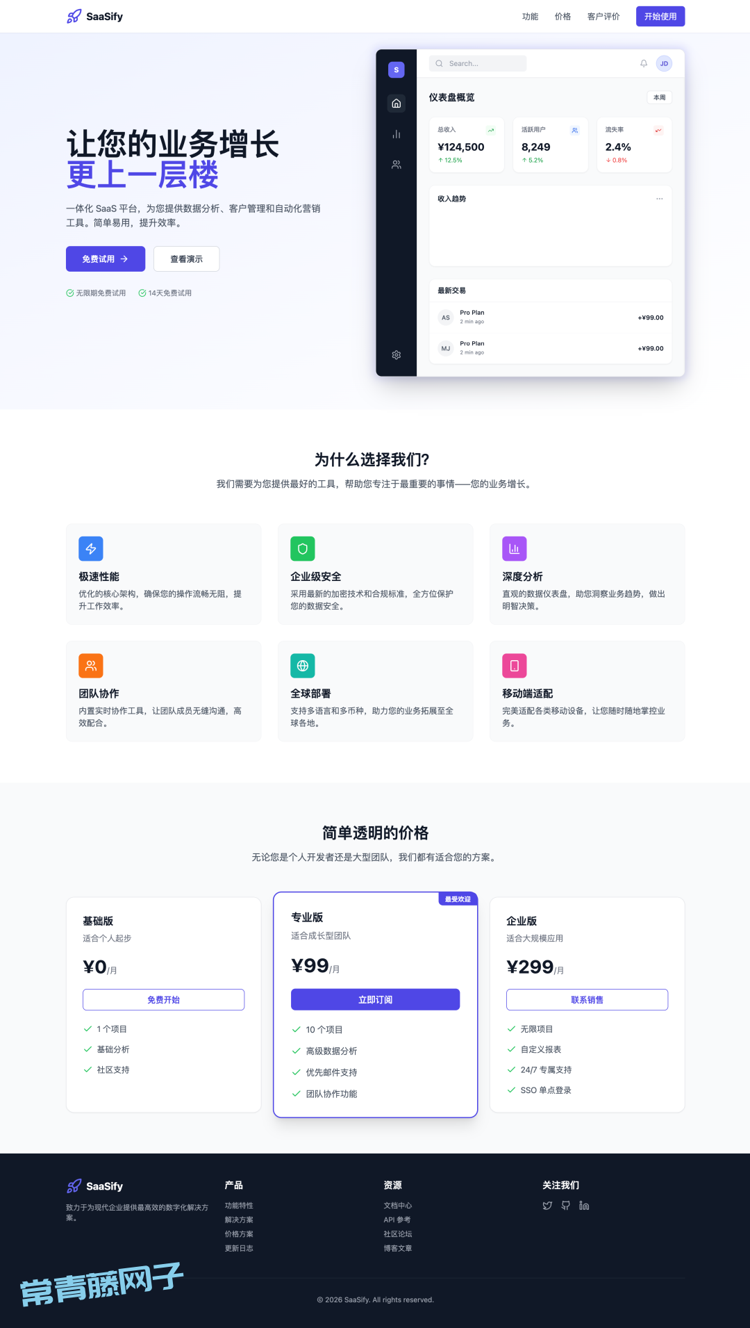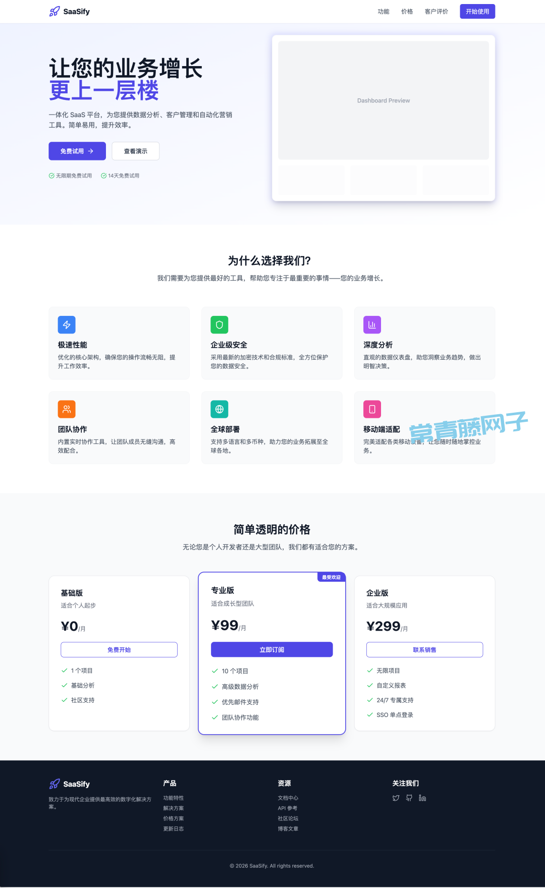 帮我设计一个 SaaS 产品的落地页,风格要现代简洁。