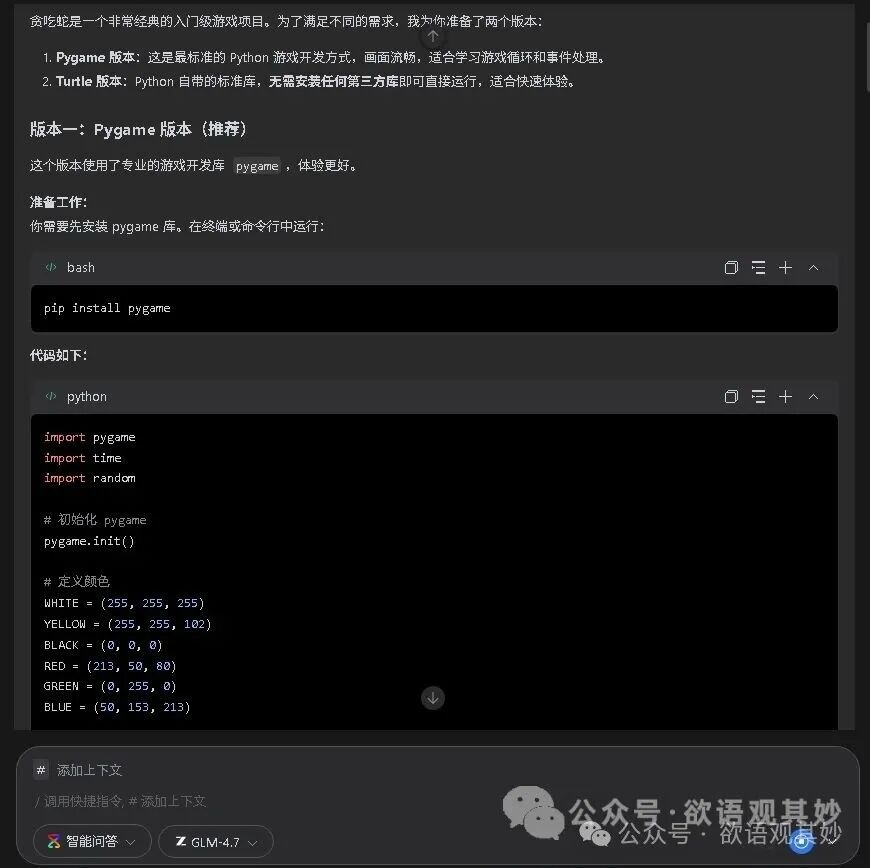 如果你提问以后,它直接给你代码说明是问答模式,需要自己手工复制黏贴进文件,这种模式更倾向于单纯的提问、对话之类的场景。