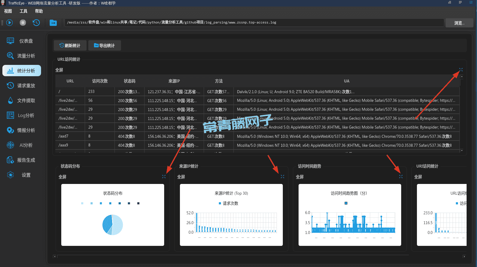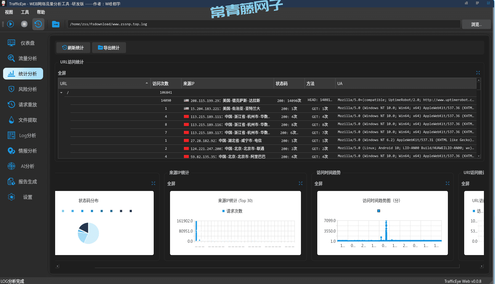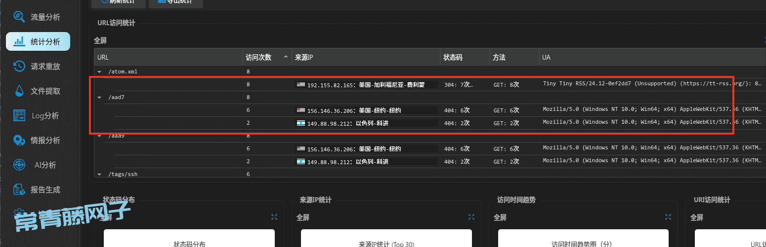 URL 统计模块,分析访问频率、状态码分布等维度的统计数据