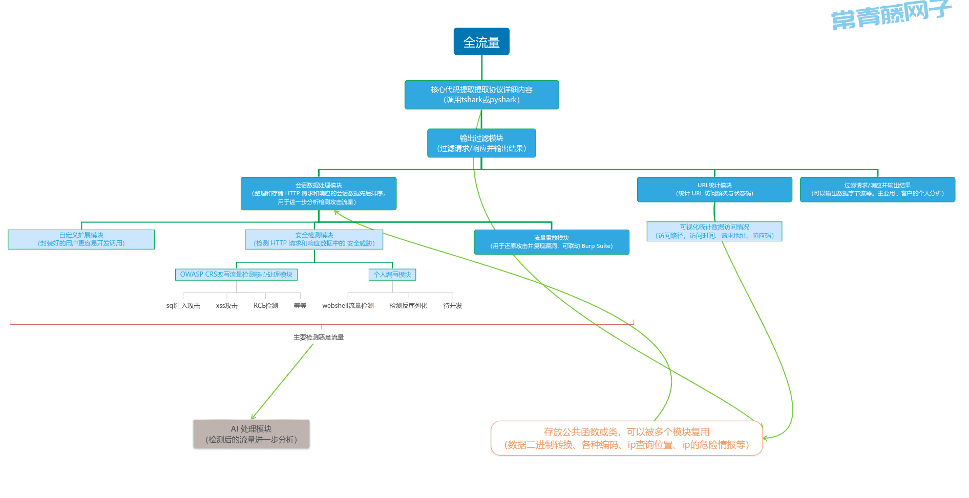 该工具的主要目标是对护网蓝队、流量分析的网络流量进行详细分析,识别潜在的安全威胁,特别是针对Web应用的攻击(如SQL注入、XSS、Webshell等),它通过模块化设计让用户能够根据需要选择和定制不同的功能,适用于安全研究人员、渗透测试人员和网络管理员等专业人士