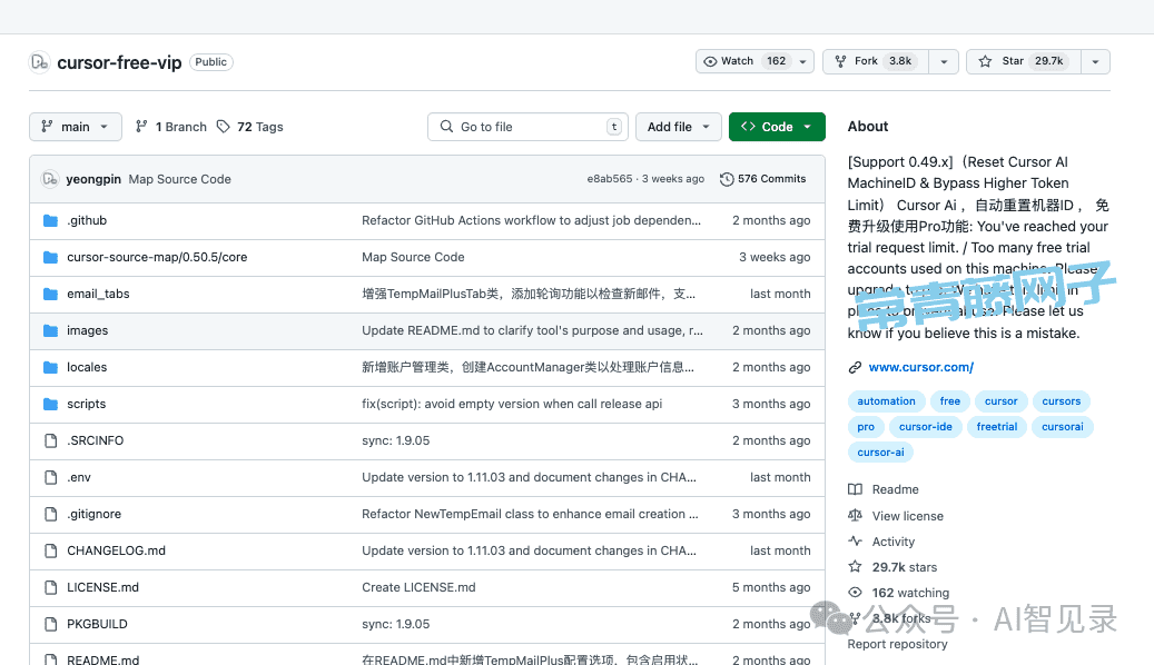 第一个要介绍的项目,简直是"开发者福音"。它的核心功能就一个:让你免费用上 Cursor 的 Pro 功能。