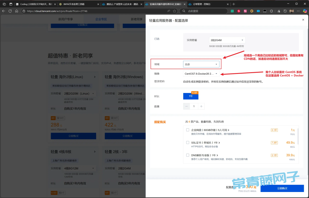 在这里,因为我已经有过一台服务器,不再进行购买演示,大家自行购买即可。
