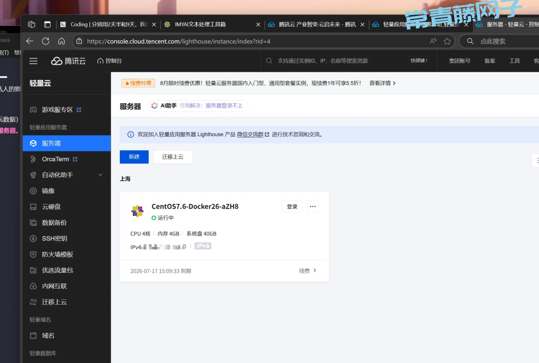 网址:服务器 - 轻量云 - 控制台: https://console.cloud.tencent.com/lighthouse/instance/index