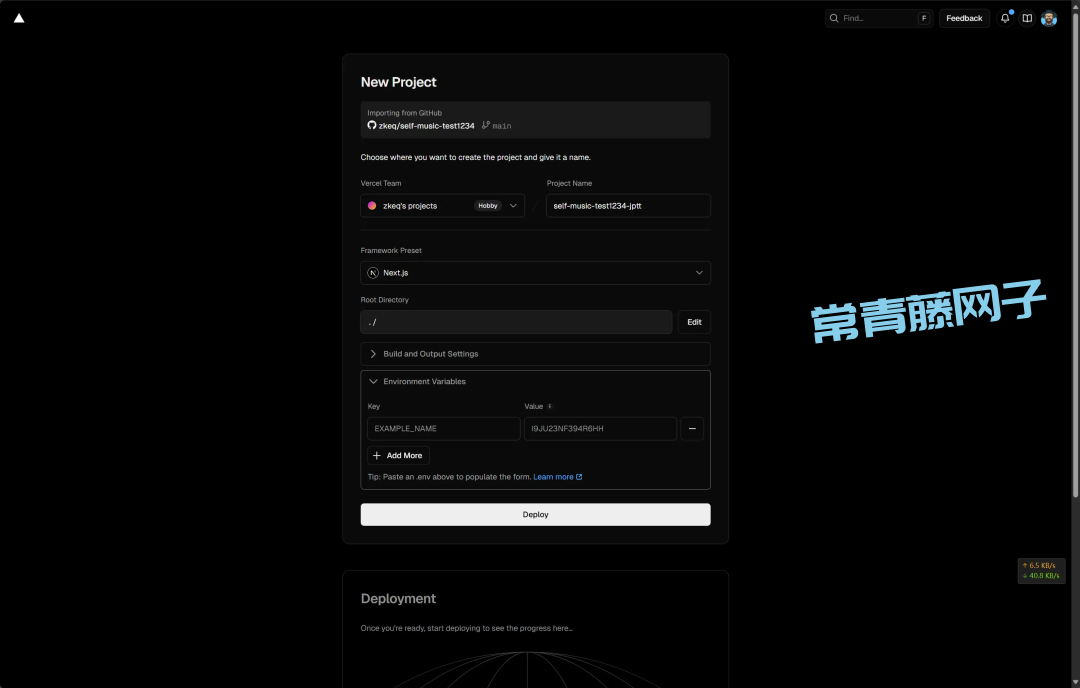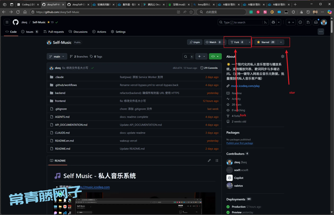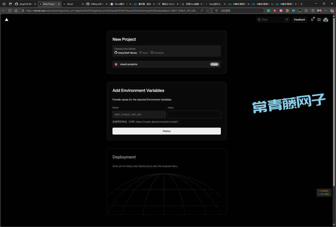 音乐站一键部署:https://vercel.com/new/clone?repository-url=https://github.com/zkeq/Self-Music/tree/main/frontend