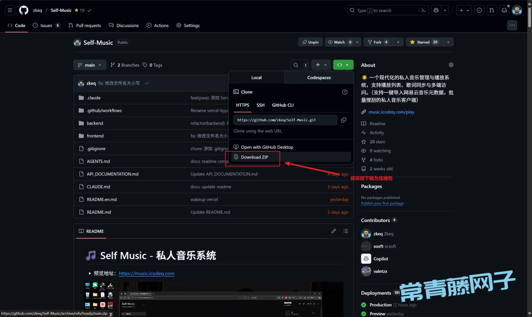音乐站仓库提示传送门:https://github.com/zkeq/Self-Music#-%E5%BF%AB%E9%80%9F%E5%BC%80%E5%A7%8B