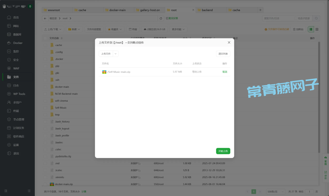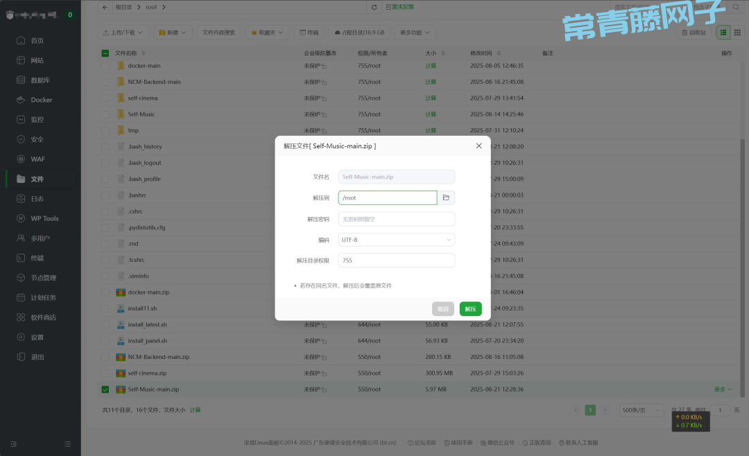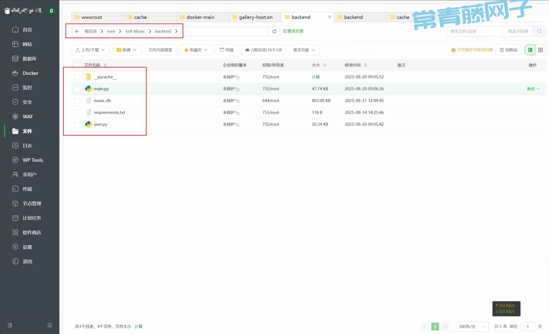 解压之后,我们进入 /root/Self-Music/backend 这个文件夹,即可看到刚解压出来的后端。