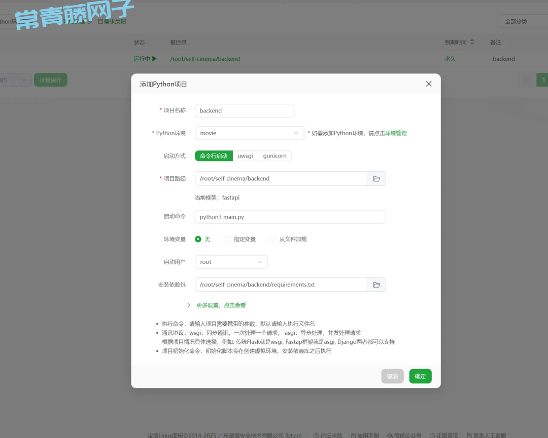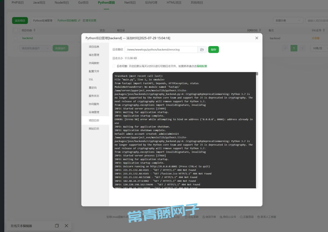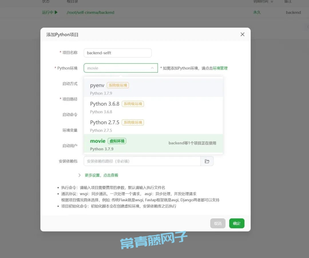 然后 打开宝塔 网站 -> Ptython项目 -> 新建站点