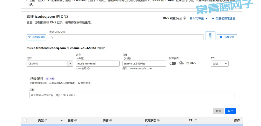 接着去添加 CNAME 解析,在这里使用一个大佬的 国内优选解析地址 cname-vc.9420.ltd 会快很多,解决很多网络问题。