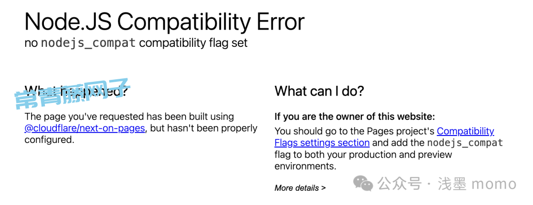 我点过去查看网页,出现一个问题,需要在Compatibility Flags settings section 模块添加 nodejs_compat