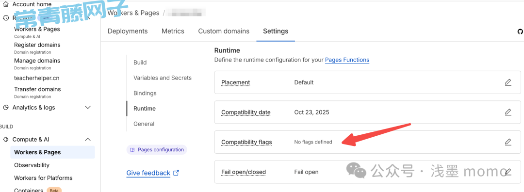 直接进入到工程对应的Settings页面,在Compatibility flags这里添加nodejs_compat这个flag即可
