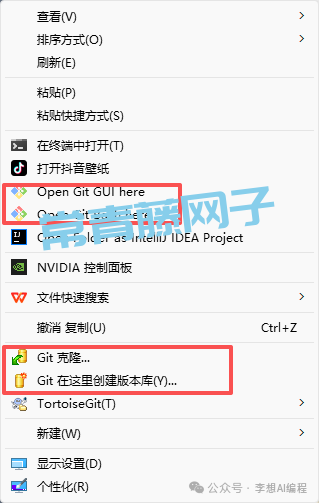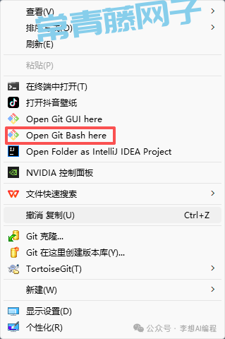 下载成功后鼠标右键你可以看到多了Git的命令。