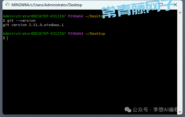 点击Git Bash here,输入:git --version,显示输出版本信息就证明安装成功了。