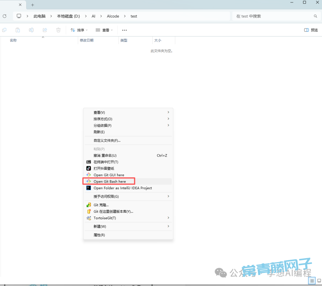 来到我们的文件夹,鼠标右键打开Git Bash Here,输入以上命令