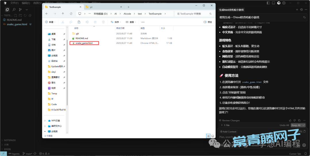 接下来我们用我们的AI编程工具,随便哪个CC也好,Cursor也好,打开我们的这个文件开始编码。