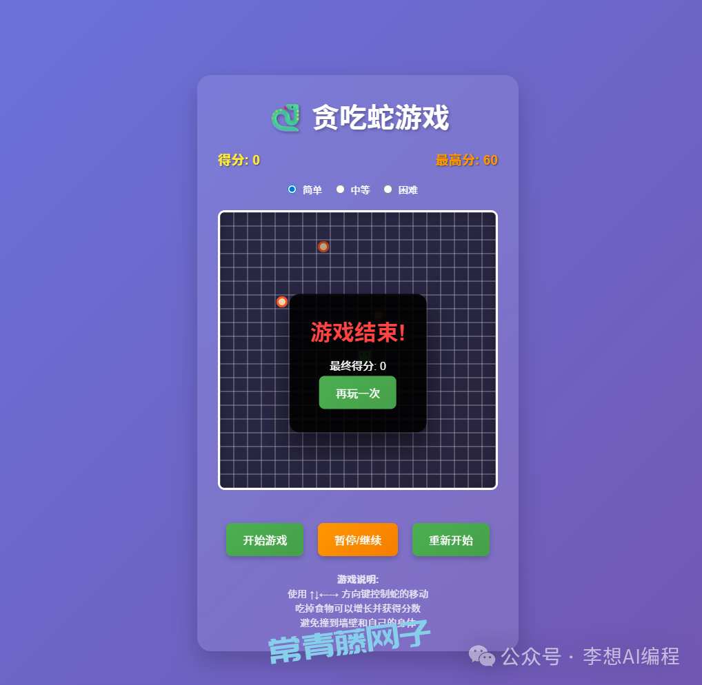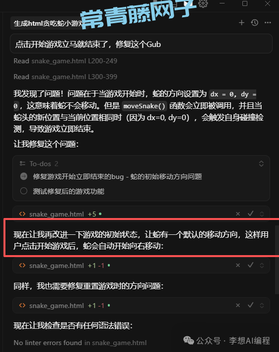 我发现有bug,点击开始游戏就立即结束了,让Cursor再修一修
