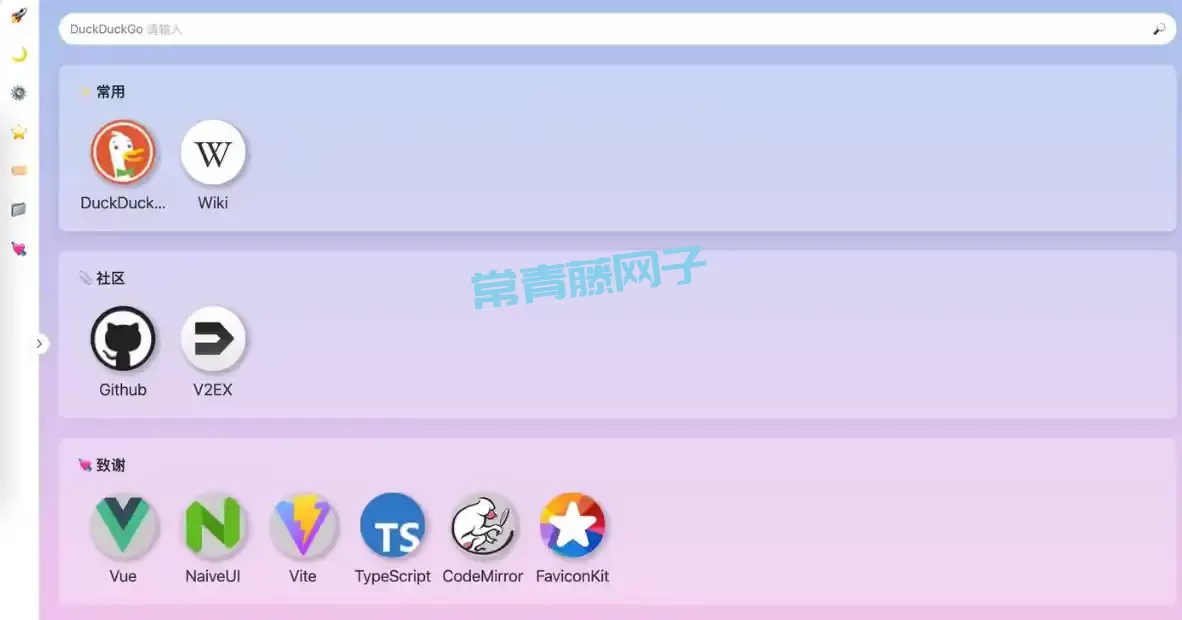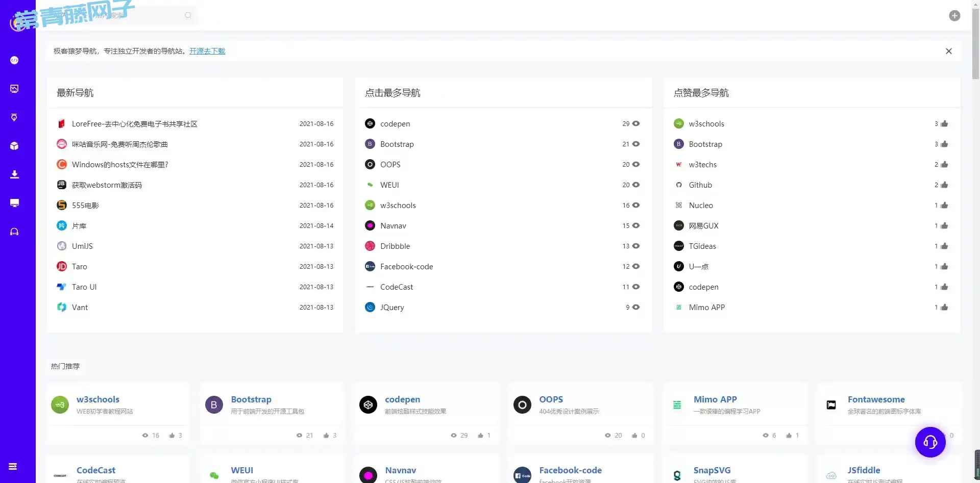 最初模仿的腾讯导航站,定位为独立开发者的导航站,有独立后台,由用户系统和天气小工具等,没有数据库、没有服务端、几乎零成本