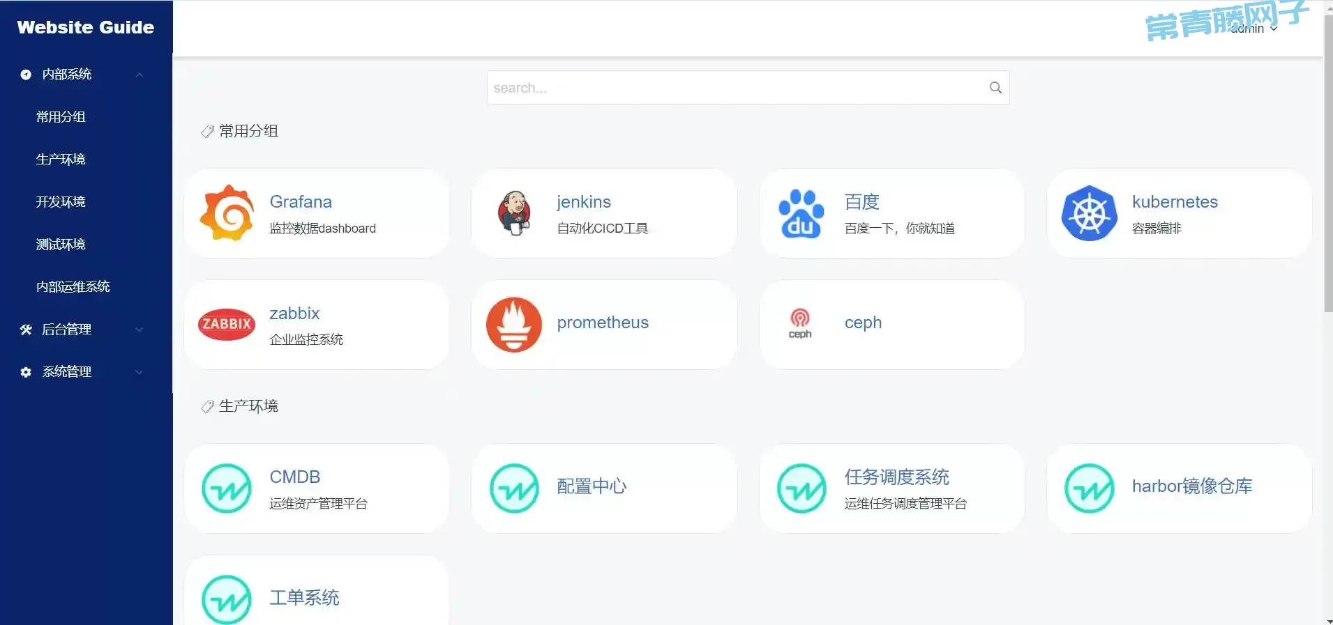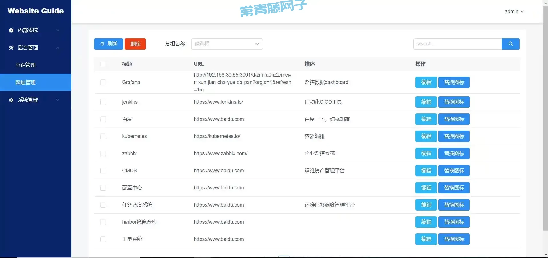企业内部网址导航系统,基于 Python+Django+Vue 开发,具有网址导航、网址管理、用户管理等功能。