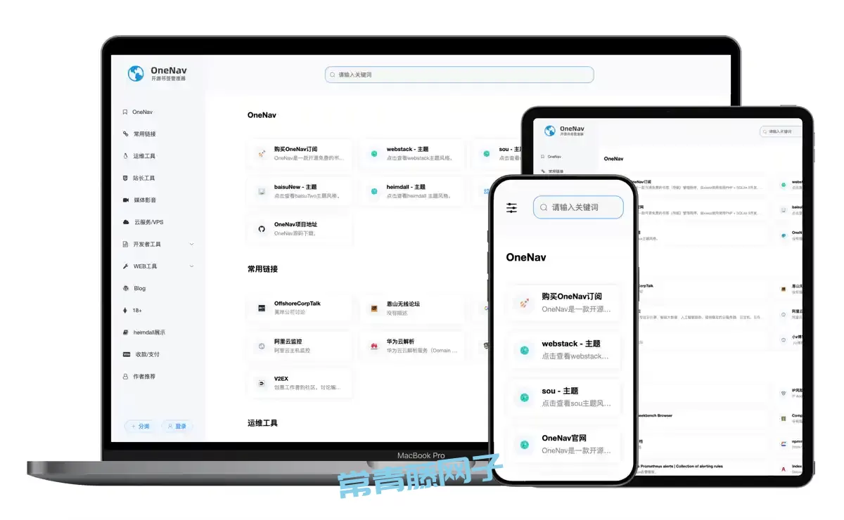 静态响应式网址导航网站,知名导航WP主题的开源版本,带后台,但功能比较单一,有很多别人二开的版本,另外付费可以看:OneNav