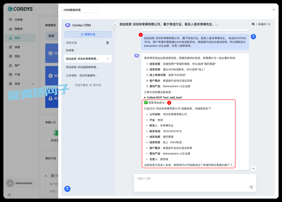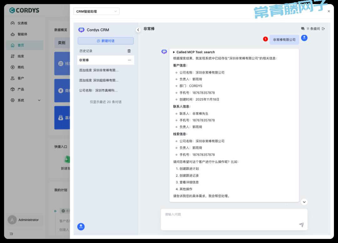 通过 MCP 智能创建线索、客户、商机、联系人、智能录入跟进记录、智能查重啥的。
