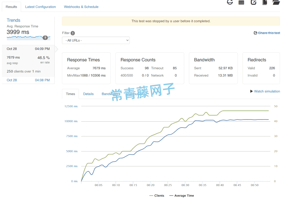 然后我使用loader.io,我之前在这边文章里有介绍过具体的方法,这里就不做赘述。 给WordPress做压力测试