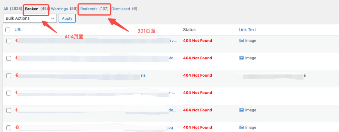 一开始我使用gsc导出所有404和301链接显示,但是这样的做法太慢,而且不全,然后我就找到了一款插件